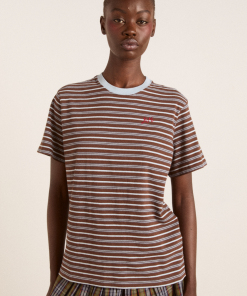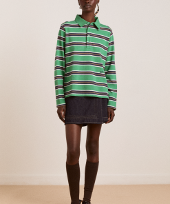 Damson Madder Women’s Sybil Stripe Crew Cardigan – Green/navy Stripe | Green