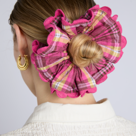 Damson Madder Women’s Garter Bun Wrap – Garden Tulle Stripe | Pink & Green