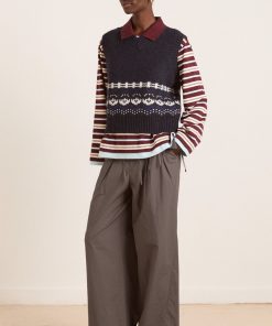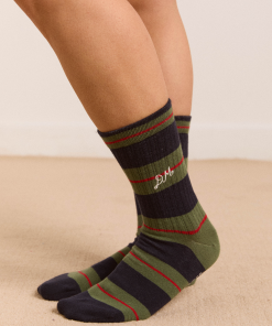 Damson Madder Women’s Sybil Stripe Crew Cardigan – Green/navy Stripe | Green