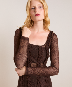 Damson Madder Women’s Raphi Lace Midi Dress – Coffee | Brown