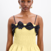 Crafted from organic cotton, the Bea Cami features a peplum hem and contrast bows at the bust, adding dimension to its clean, structured silhouette. With a stretchy shirred bodice and removable straps, this Bea is comfortable and versatile. Pair with our matching Charlotte Midi Skirt.