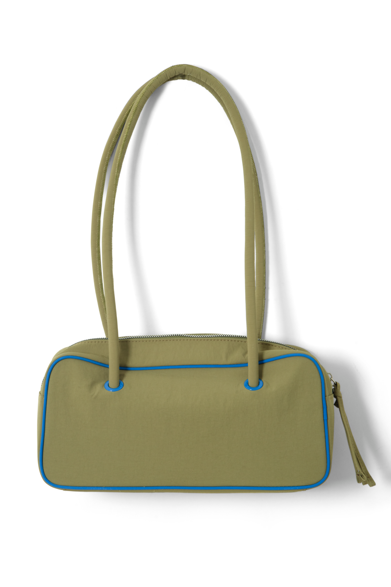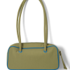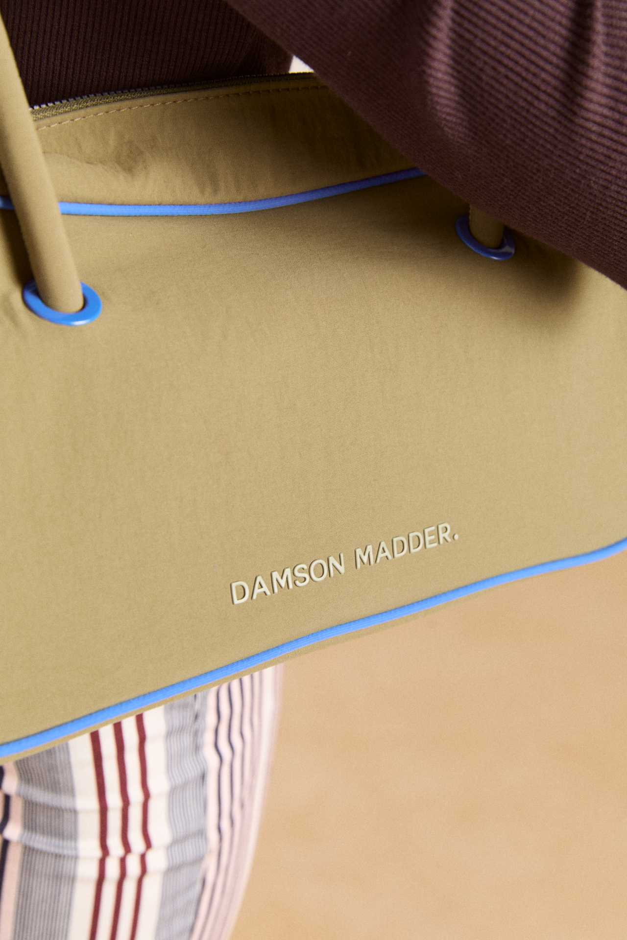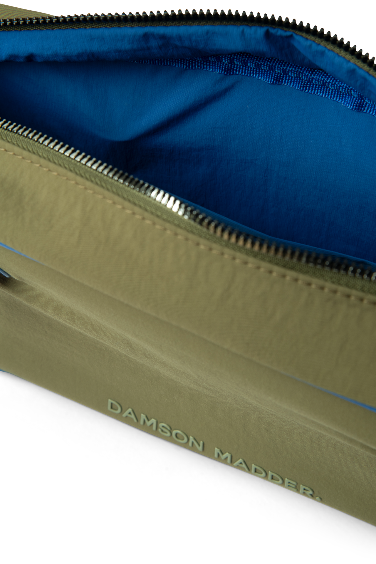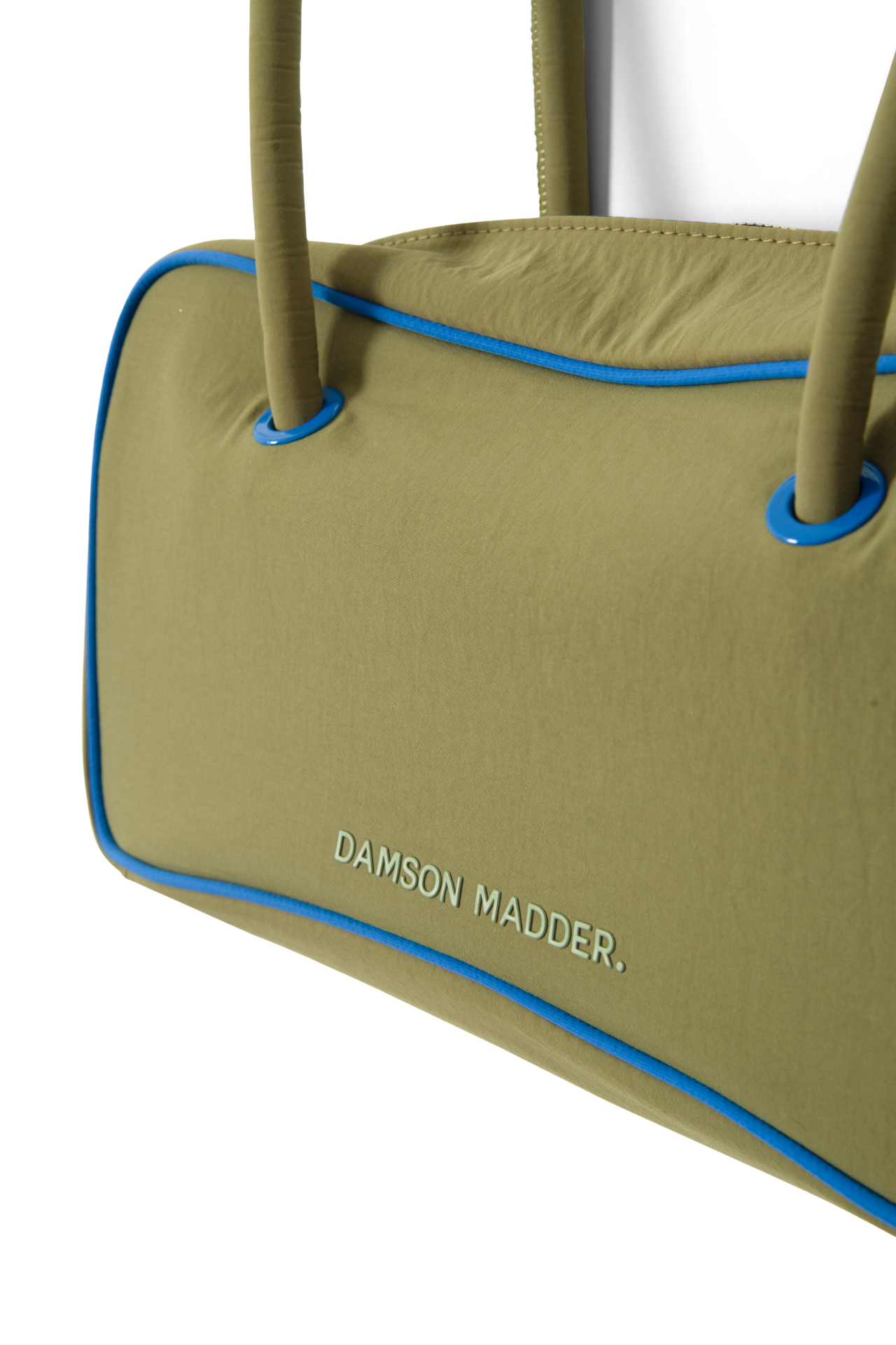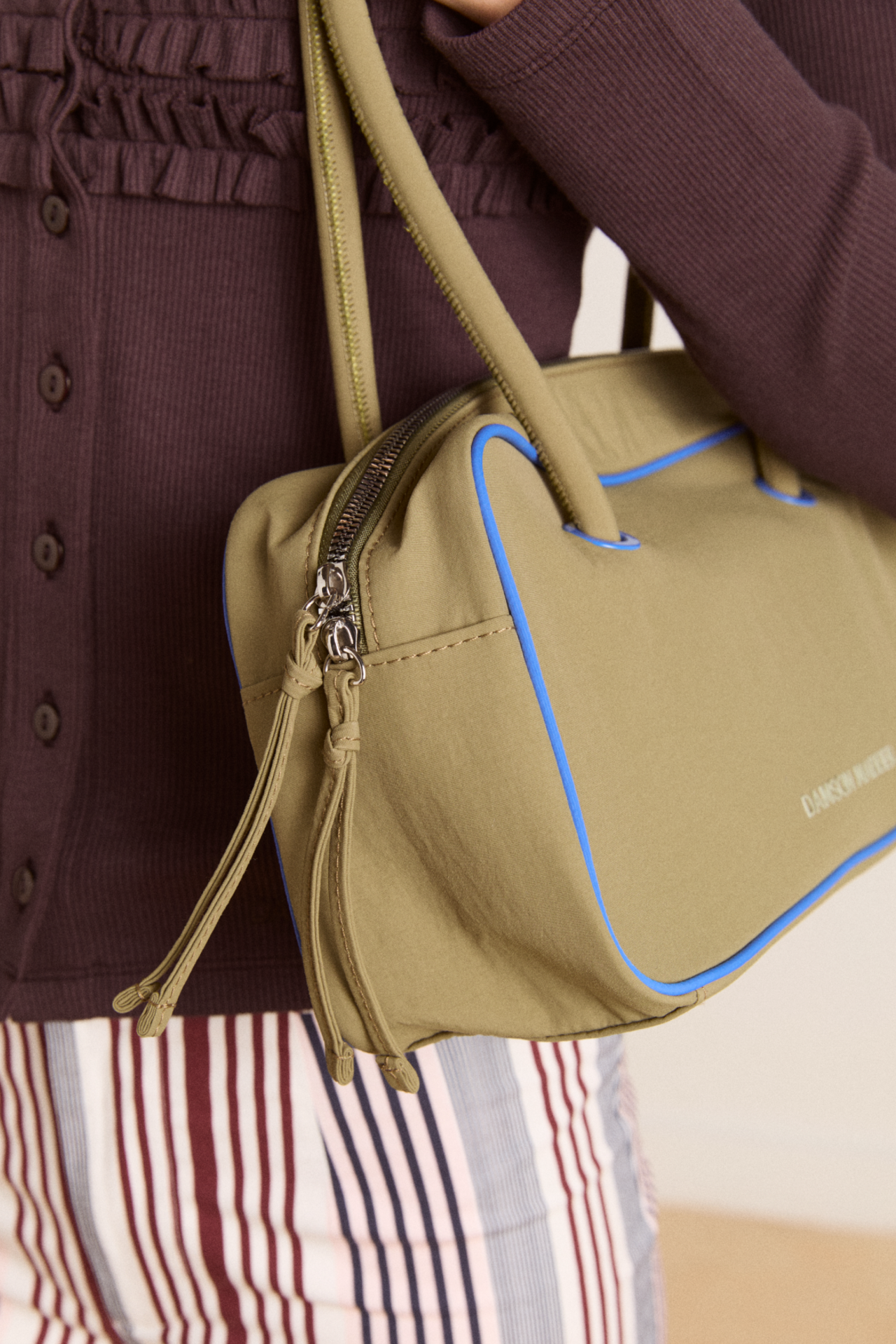 Our take on a classic bowler, meet the Benny Mini Bowler in olive & cobalt. Featuring contrast cobalt piping details and lining, as well as a metal zip closure for security, the Benny is a staple that will elevate any look. Finished with a rubberised Damson Madder logo.