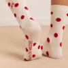 Meet our signature calf length socks in white and red polka dot print. Crafted from 75% organic cotton, 23% recycled nylon, and 2% elastane, offering a perfect blend of comfort, durability, and a touch of stretch. The soft, organic cotton ensures a gentle feel against the skin, while the nylon and elastane contribute to enhanced flexibility and shape retention.