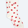 Meet our signature calf length socks in white and red polka dot print. Crafted from 75% organic cotton, 23% recycled nylon, and 2% elastane, offering a perfect blend of comfort, durability, and a touch of stretch. The soft, organic cotton ensures a gentle feel against the skin, while the nylon and elastane contribute to enhanced flexibility and shape retention.