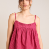 Meet the effortlessly wearable Clare Blouse. Crafted from 100% organic cotton in a striking berry business stripe, this blouse features a button up front with a flattering square neckline, and a removable belt to bring structure to the silhouette.