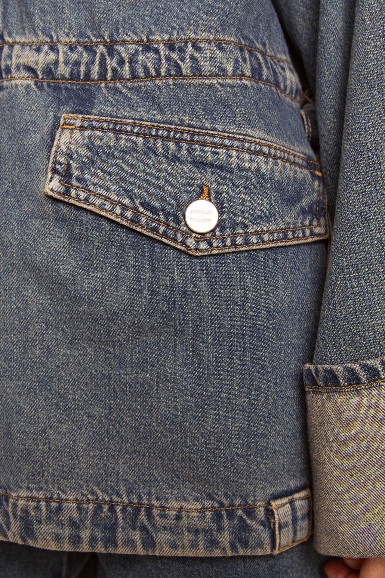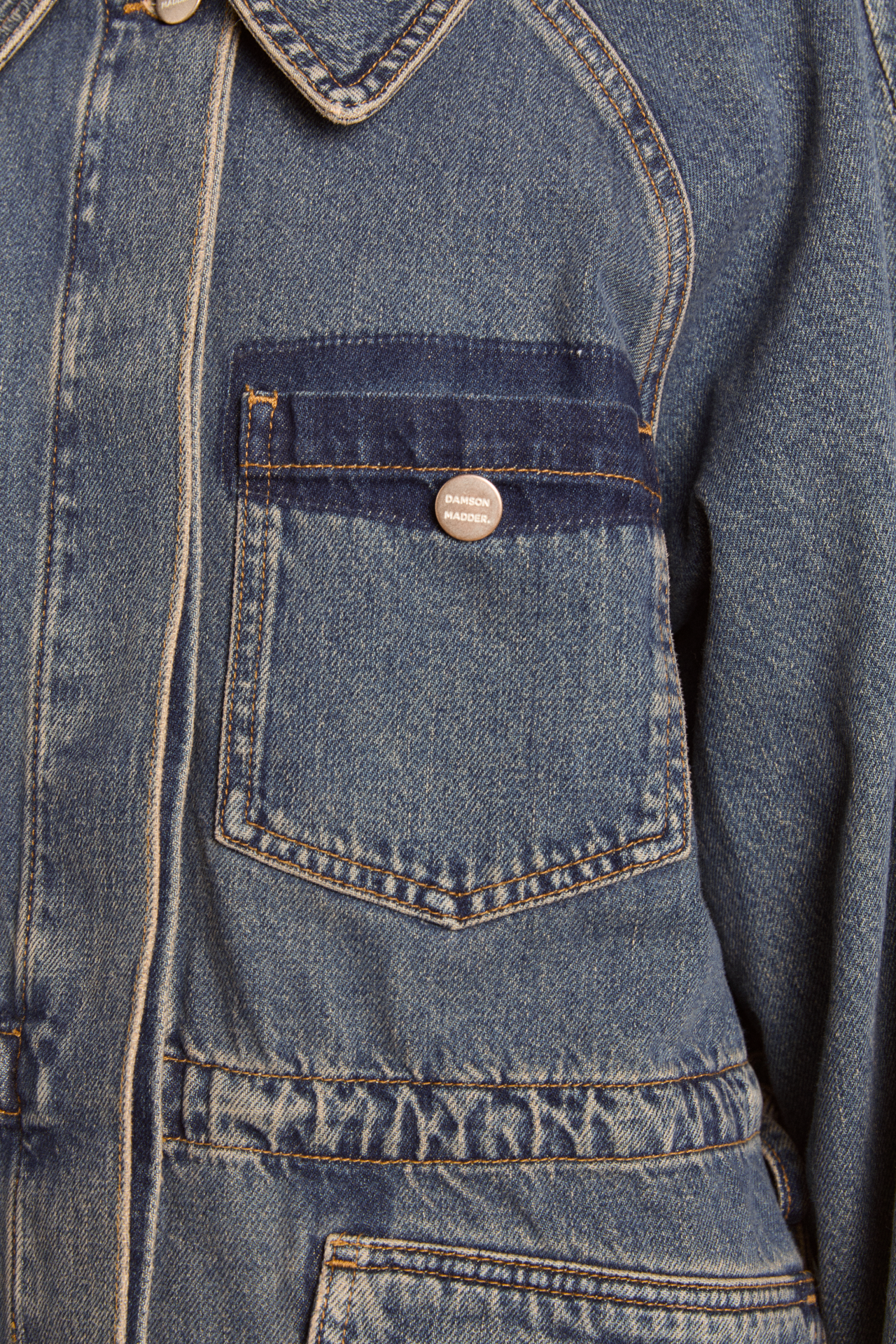 A perfect mix of tailored and oversized, our Emilie Workwear Jacket in vintage wash features a drawstring waist to create a cinched silhouette. Made from 100% organic cotton, and crafted with a shadow detail pocket, raglan shoulder and concealed placket with shank fastening. Pair with our matching Drew Jeans for a complete head-to-toe look.