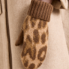 These knit mittens feature the distinctive DM leopard design, offset by a solid colour cuff and thumb for contrast. Soft, warm, and easy to style, they pair perfectly with the matching headscarf for a coordinated finish.