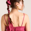 Featuring our signature embroidered DM logo detail and crafted from 100% organic cotton, the Garter Bun Wrap is now available in our berry business stripe print. Designed to be tied in a bow or woven through your plait, this scrunchie will elevate any hairstyle.