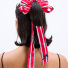 Featuring our signature embroidered DM logo detail and crafted from 100% organic cotton, the Garter Bun Wrap is now available in our red stripe print. Designed to be tied in a bow or woven through your plait, this scrunchie will elevate any hairstyle.