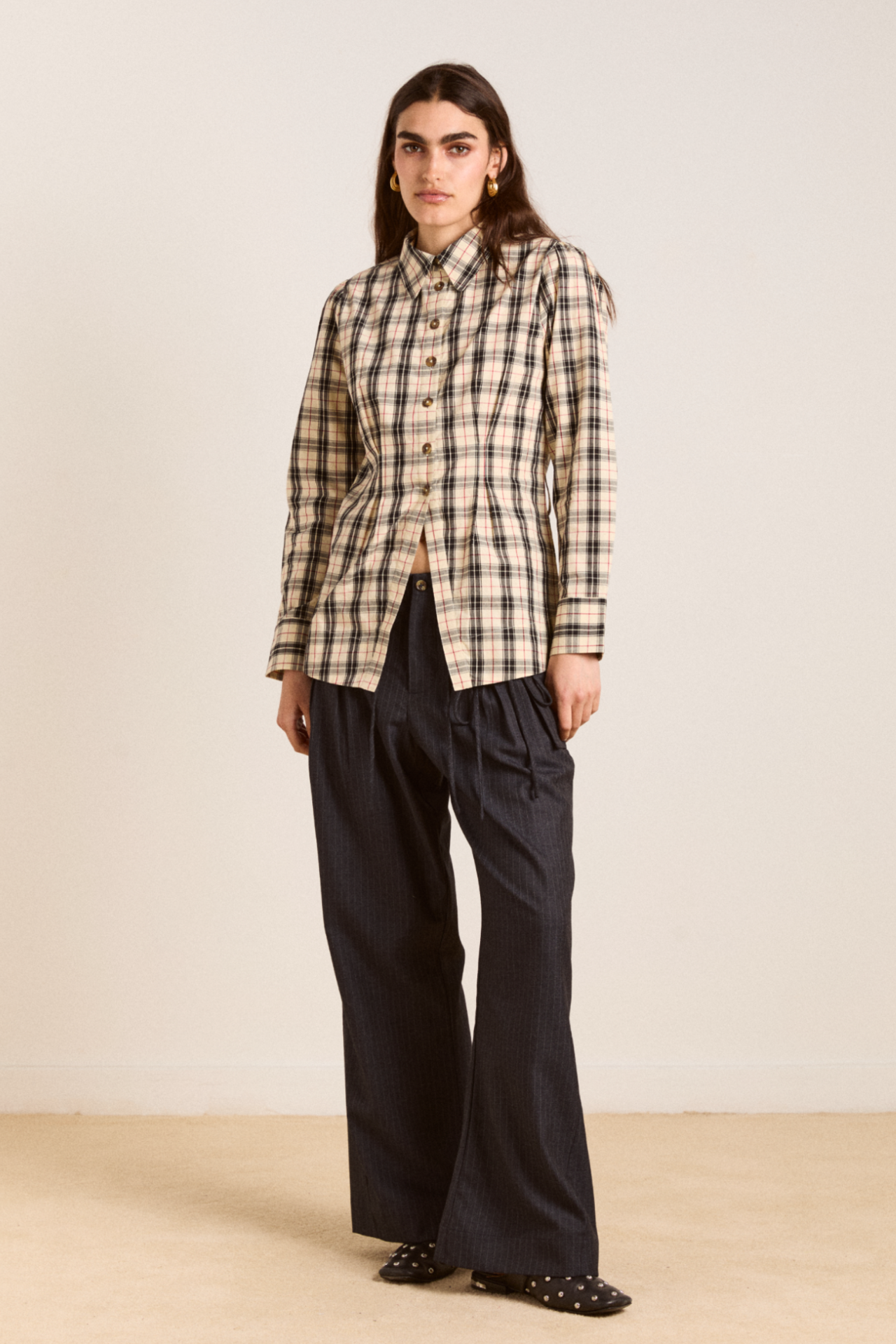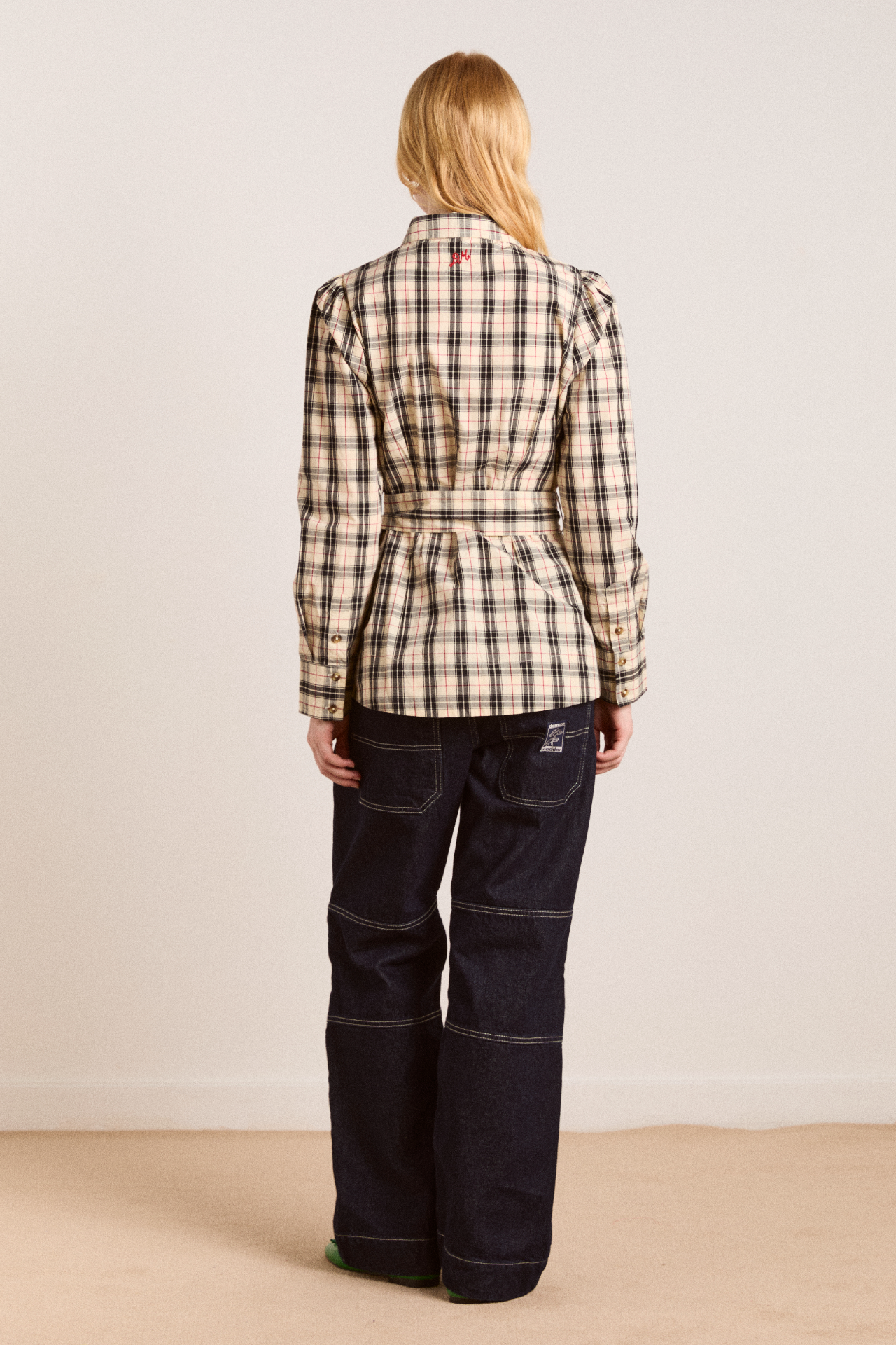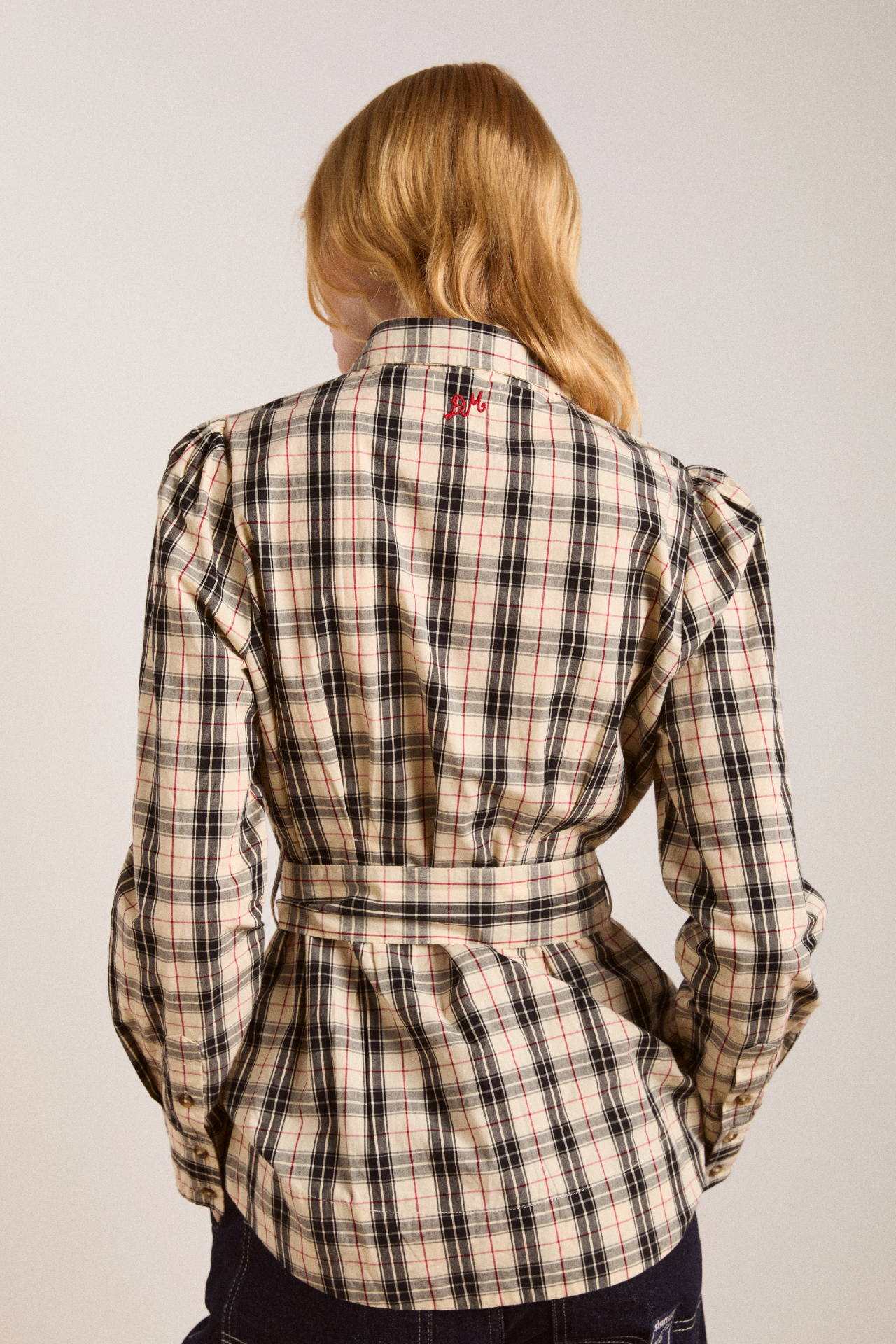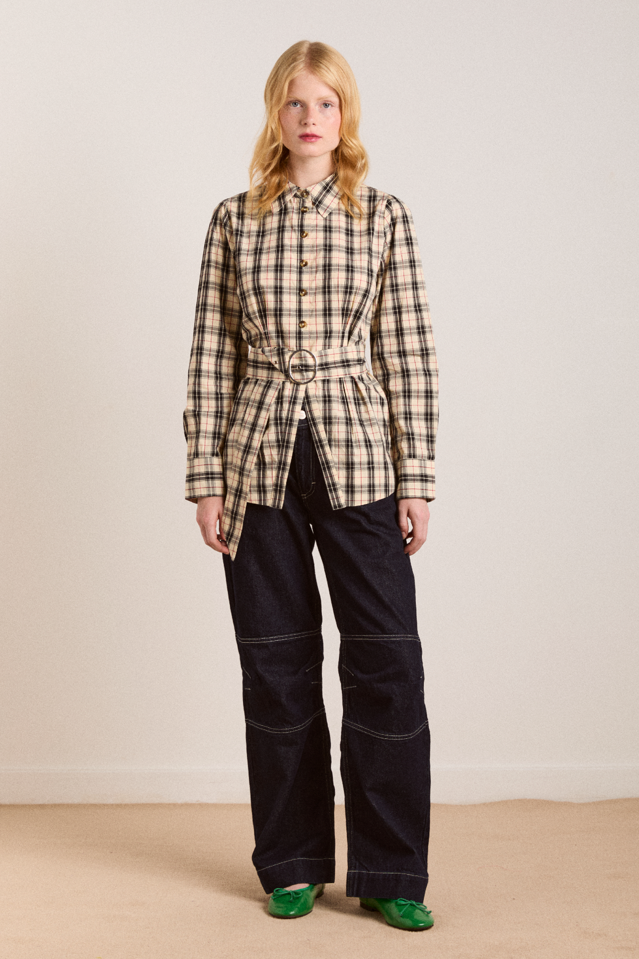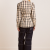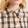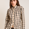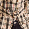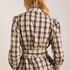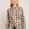 Defined by an-all over butter check print, the Harley Shirt fuses simple tailoring with a bold print. Featuring a removable belt and front split at the hem. Matching skirt and accessories available.