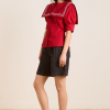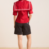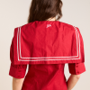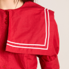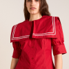 Our Keisha Blouse in cherry red offers classic, nautical charm with its button-down front and fitted cut. Made from 100% organic cotton, it’s a clean, crisp statement. Finished with our signature DM embroidery detailing on the back.