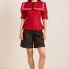 Our Keisha Blouse in cherry red offers classic, nautical charm with its button-down front and fitted cut. Made from 100% organic cotton, it’s a clean, crisp statement. Finished with our signature DM embroidery detailing on the back.