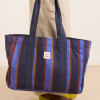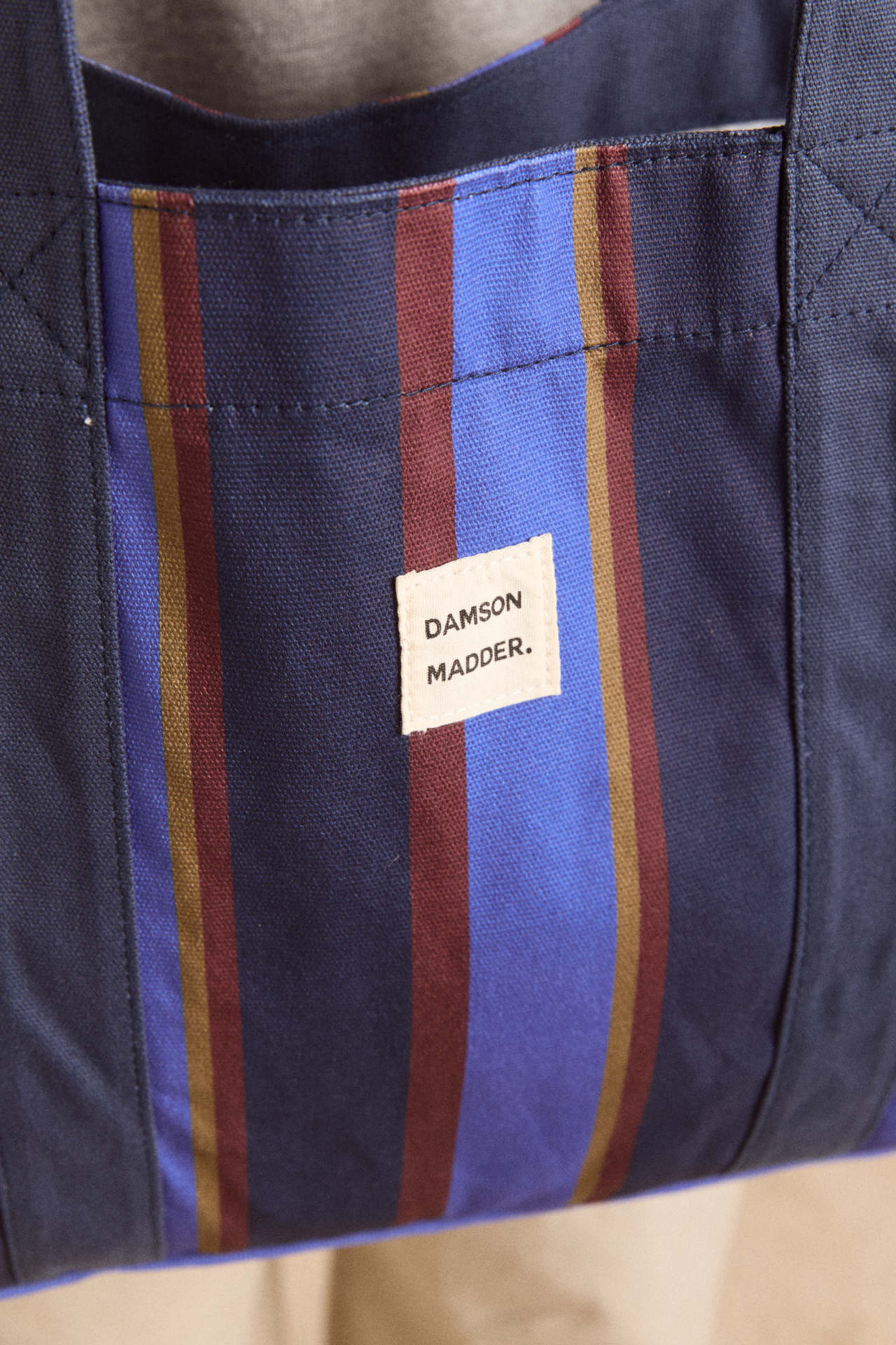 Our best-selling canvas tote is back in a brand new colourway. Crafted from 100% recycled cotton, the Navy Tan Wide Stripe tote features an internal slip pocket and our signature woven Damson Madder woven patch.