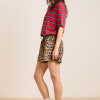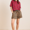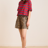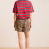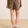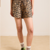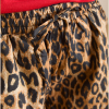 The pull on shorts feature an all over leopard print design, an adjustable tie up waist and frill pocket detail.