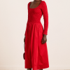 The Malinda long sleeve smocked midi dress features a beautifully hand-smocked bodice and sleeves, bringing soft structure to its fluid form. The square neckline frames the collarbones with elegance, while a delicate tie at the back adds a subtle, feminine finish. The long sleeves make it ideal across seasons, whether worn solo or layered with refined outerwear.
