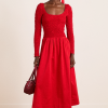 The Malinda long sleeve smocked midi dress features a beautifully hand-smocked bodice and sleeves, bringing soft structure to its fluid form. The square neckline frames the collarbones with elegance, while a delicate tie at the back adds a subtle, feminine finish. The long sleeves make it ideal across seasons, whether worn solo or layered with refined outerwear.