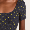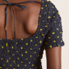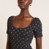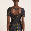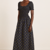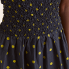 Crafted from 100% organic cotton, the Malinda Super Smocked Midi Dress in navy olive spot is adorned with an all over spot print. Designed with a square neck and hand smocked bodice and sleeves for a flattering fit. The Malinda will effortlessly carry you from day to night.