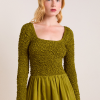 Damson Madder Women’s Malinda Super Smocked Mini Dress – Olive | Olive