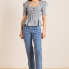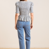 The Mansi shirred Blouse will see you through every season. Crafted from 100% organic cotton in our cloudy check print, she’s designed with puff shoulders and a shirred bodice for a silhouette that gives structure without compromising on comfort. The peplum hem is the perfect finishing touch on this fun and feminine blouse. Matching accessories available.