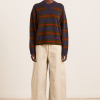 A relaxed essential with a graphic edge, the Odette v Neck is a boxy-fit knit in certified responsible wool standard merino wool, featuring an all-over stripe pattern and a flattering V neckline, striking a balance between bold and understated. Finished with subtle “DM” embroidery on the body for a signature touch.