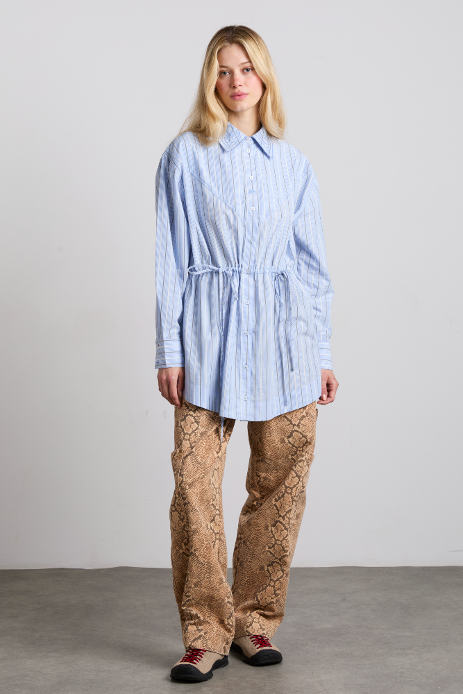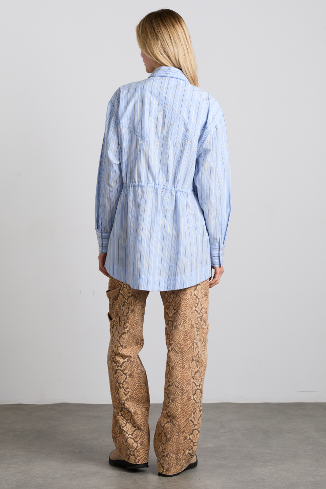 Damson Madder Women’s Romy Embroidered Shirt – Narrow Business Stripe | Blue