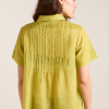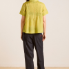 The perfect mix of tailored and floaty, meet the Sheer Wendy Blouse in golden lime. Complete with a sheer finish, button down front, and pin tuck detailing. Pair with our matching Glinda Ruffle Mini Skirt in golden lime for a statement, or with a basic to let the Wendy do all of the talking!