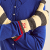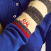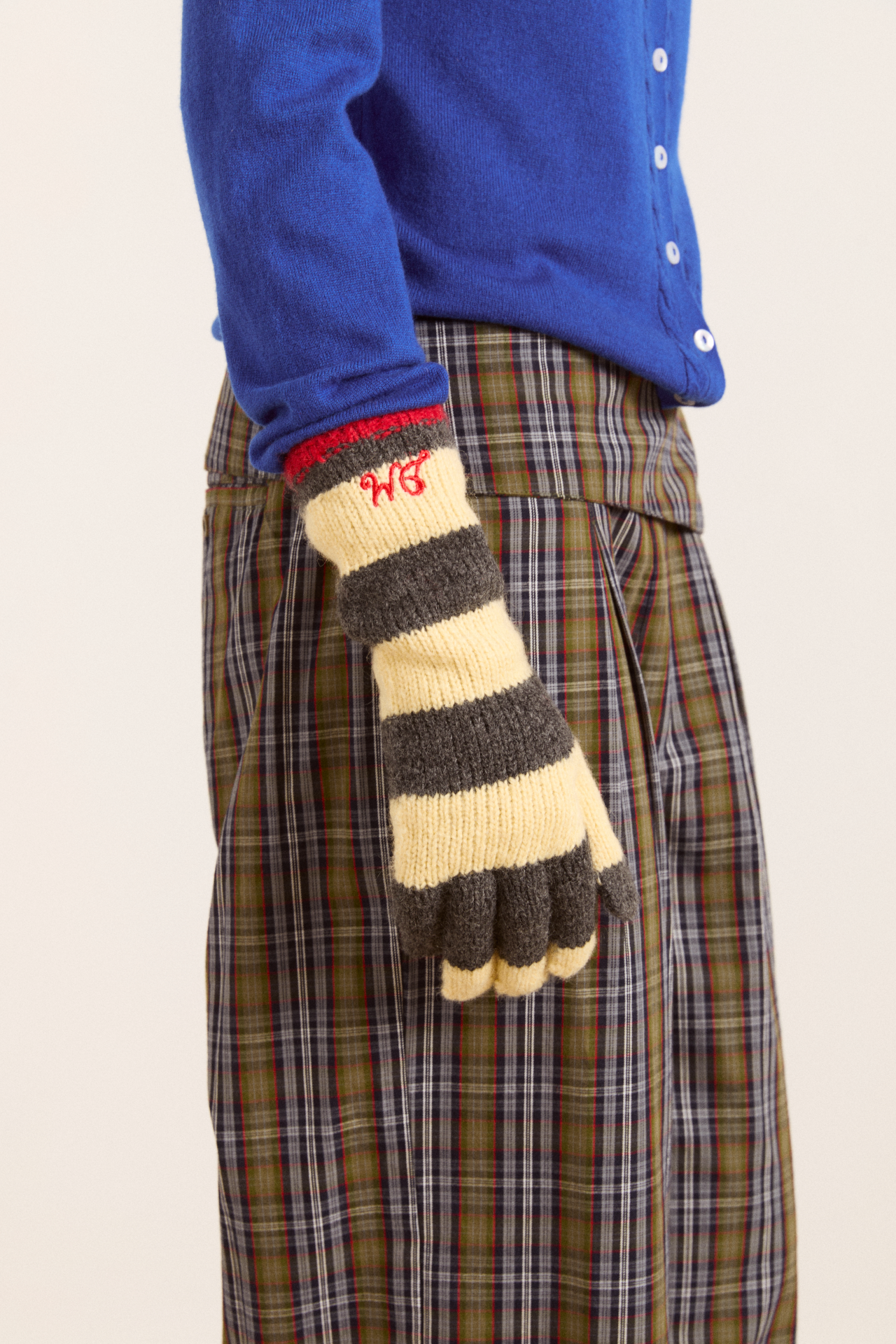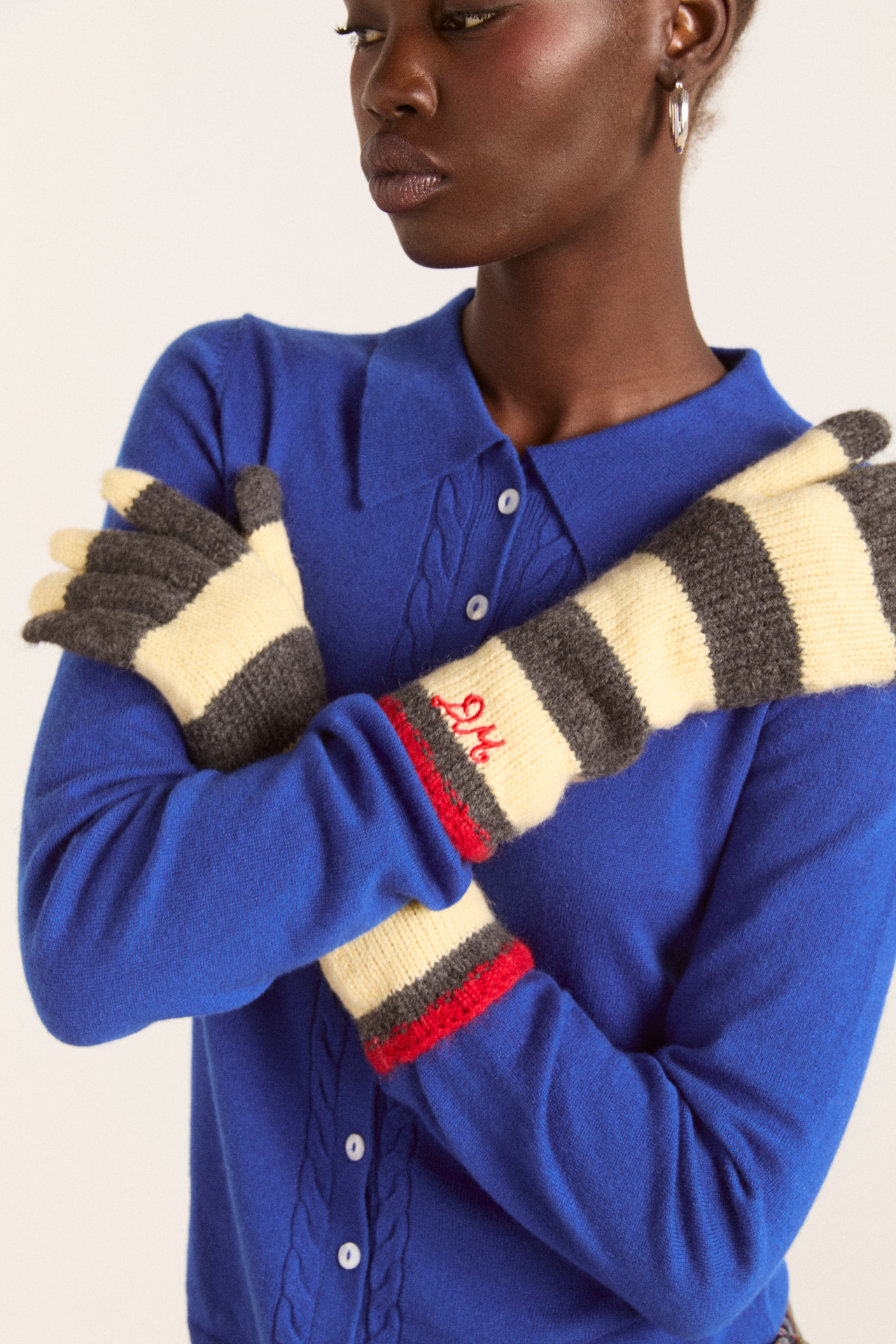 Effortlessly stylish and warm, these longer-length knitted gloves feature a bold stripe design and subtle DM embroidery. Crafted from a soft blend of wool, mohair, recycled nylon, and acrylic for lasting comfort and durability.
