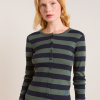 The Sybil Stripe Crew Cardigan in green/navy stripe nails maximum impact with minimal effort. Crafted from organic cotton, this crew neck cardigan features an all over stripe and button down front, finished off with our signature DM embroidery in blue.