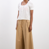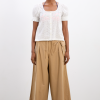 Oversized, structured and cropped, the Tatianna Culottes in tan are made from 100% organic cotton. Featuring a removable pocket, pleat detailing and custom DM embroidery on the back pockets.
