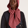 This 100% wool striped knit hood can be styled multiple ways – worn as a hood, tied at the front, or wrapped as a scarf. Finished with a contrast pink DM embroidery for a subtle branded detail.