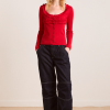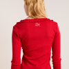 The Varsha Cardigan in cherry is the epitome of easy wearing. Crafted from soft jersey rib fabric with a rounded neckline, and finished with sweet vintage-inspired ruffle detailing. The Varsha will be on high rotation.