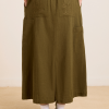 The classic utility skirt with a DM touch. The Vika Utility Midi skirt in olive is as functional as it is stylish. Crafted from 100% organic cotton and detailed with six handy pockets, it is perfect to take from day to night. Featuring DM embroidery on the back pockets and a tie detail at the waist.