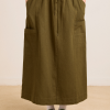 The classic utility skirt with a DM touch. The Vika Utility Midi skirt in olive is as functional as it is stylish. Crafted from 100% organic cotton and detailed with six handy pockets, it is perfect to take from day to night. Featuring DM embroidery on the back pockets and a tie detail at the waist.